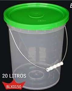 Los baldes de plásticos de color blanco transparente, tapa de 20 Litros y con una capacidad de 30 Kg.